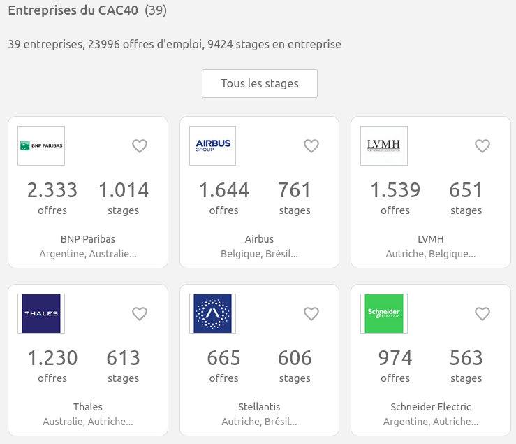 Le Top-10 des entreprises françaises qui offrent le plus de stages à l'étranger - Février 2024