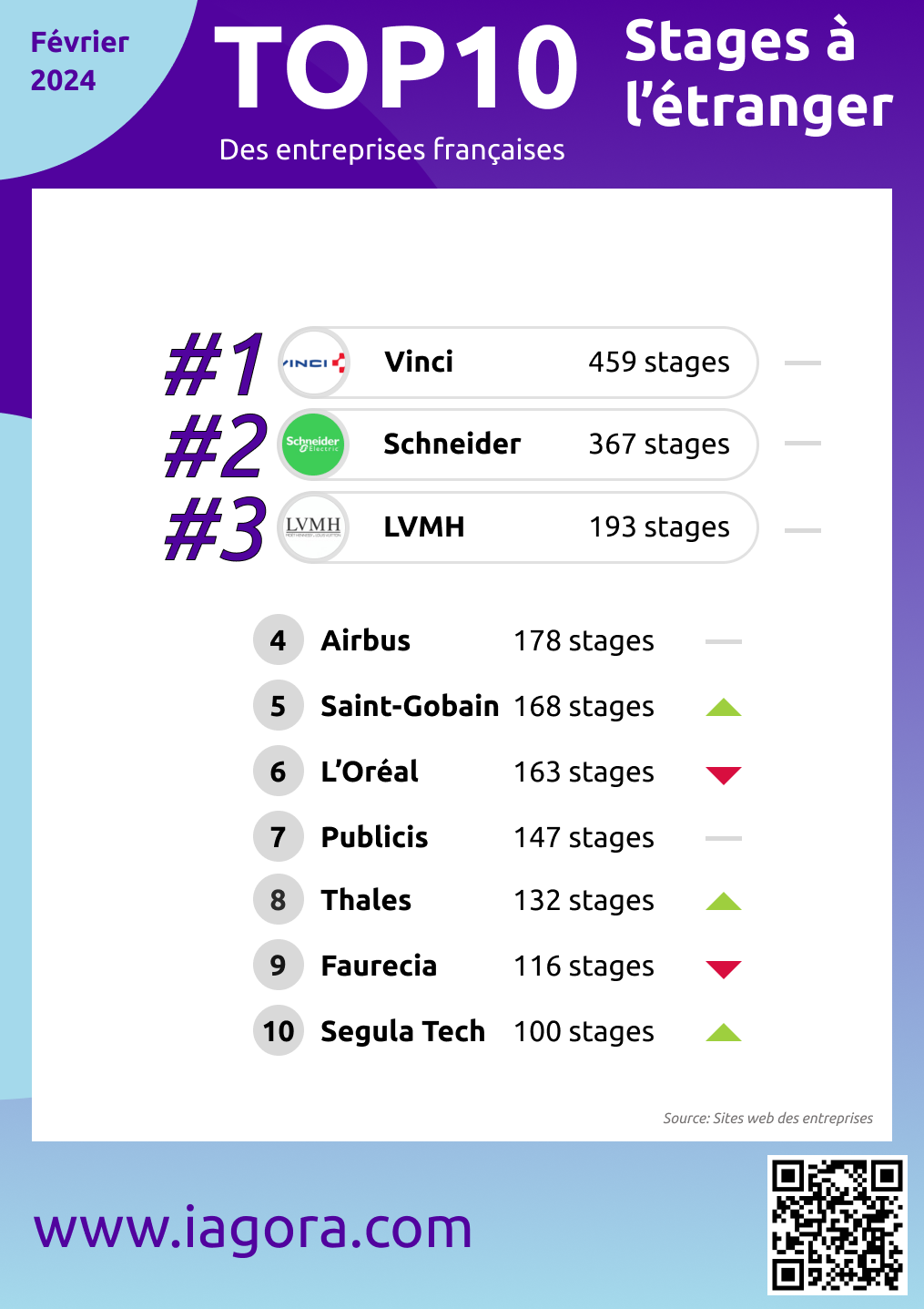 Le Top-10 des entreprises françaises qui offrent le plus de stages à l'étranger - Février 2024